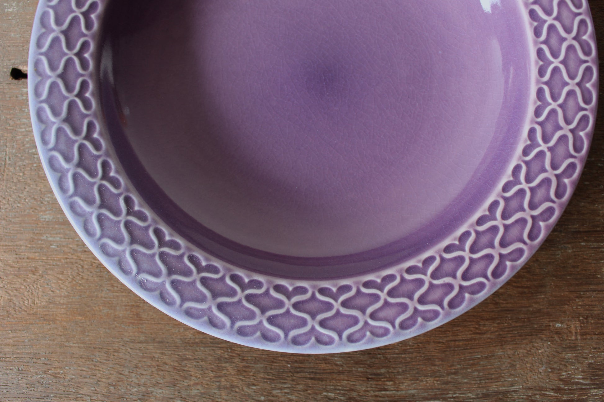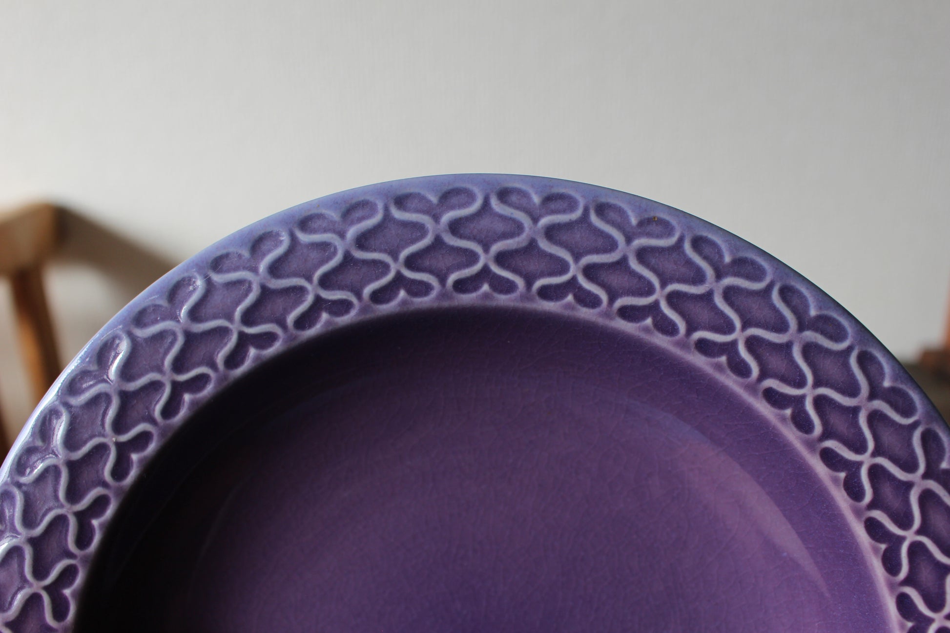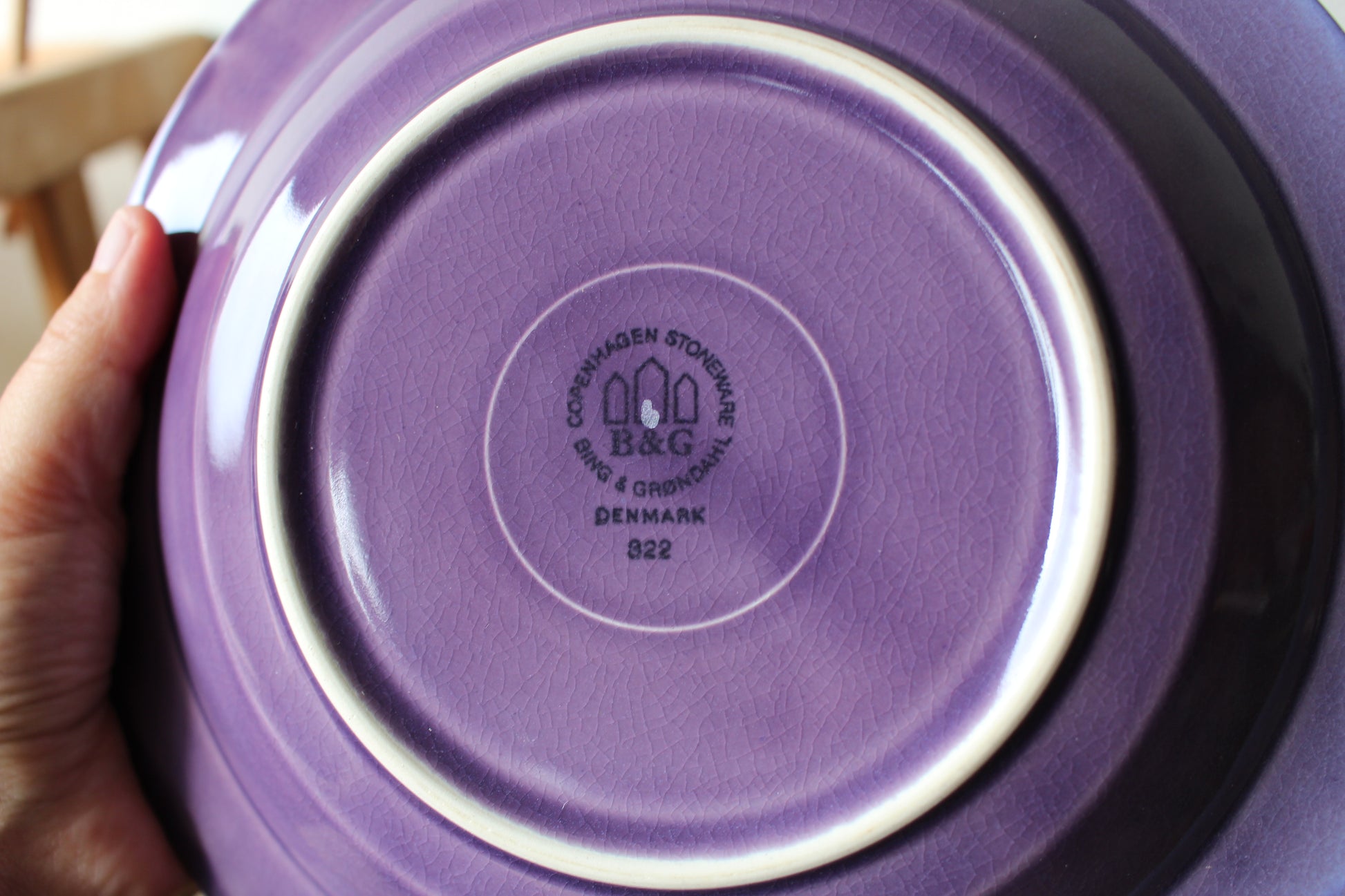 縁にかけて僅かにパープルから青色のグラデーションのようになってる箇所があります。製造時の焼き加減のものと思われます。完璧なパープル一色をご希望の方はご遠慮ください。