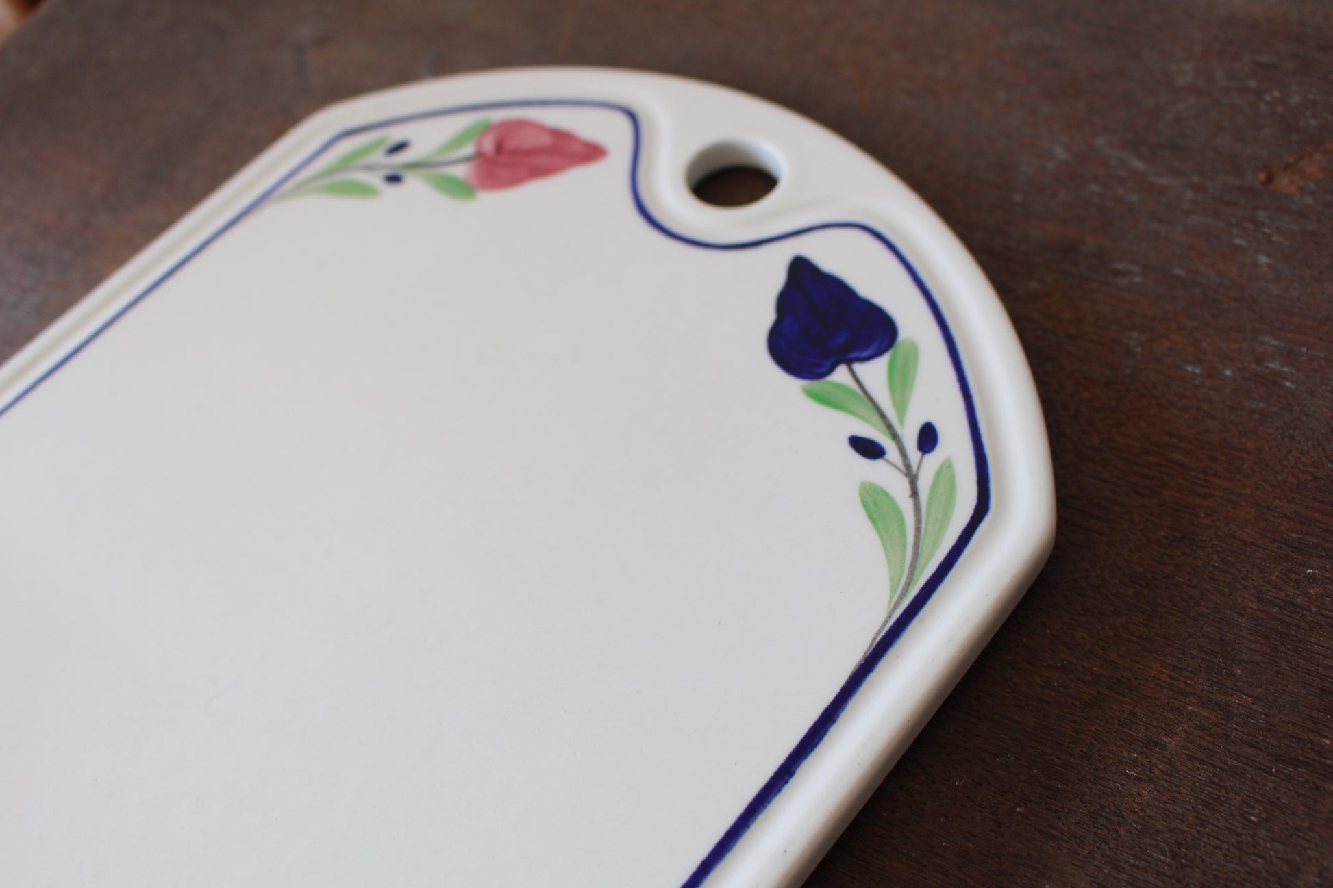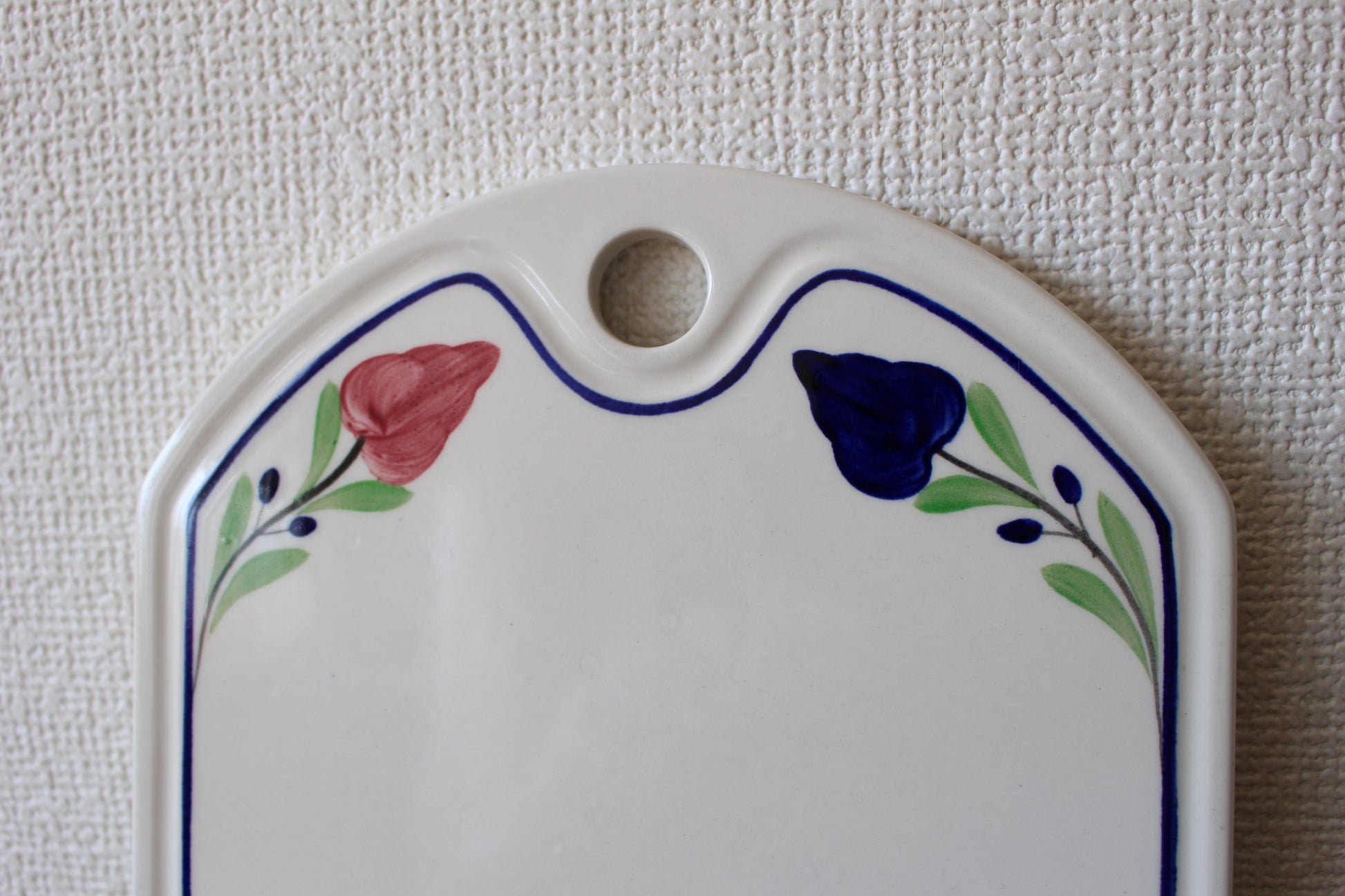 1960年代、グスタフスベリのスティグ・リンドベリによってデザインされたRankaシリーズ。手描きの赤と青のハートとリーフが可愛らしいRankaのカッティングボードです。立て掛けておいても良し、ホールがあるので壁にかけても良しの存在感のあるボードです。
