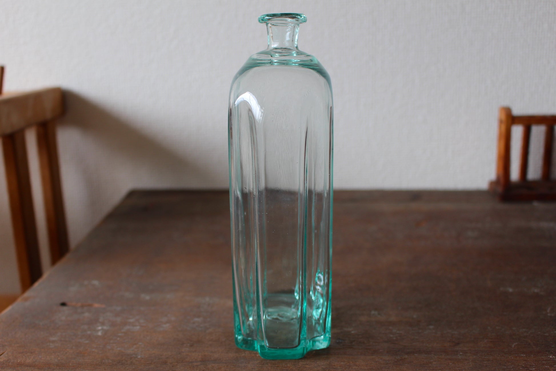 スウェーデン 19世紀 吹きガラスの蒸留酒瓶 ターコイズ