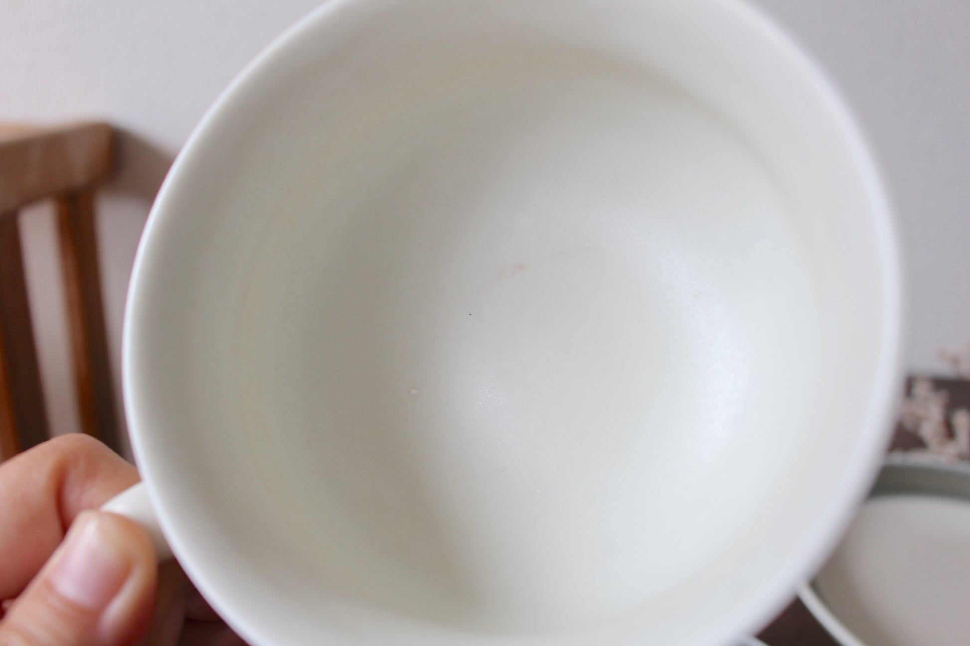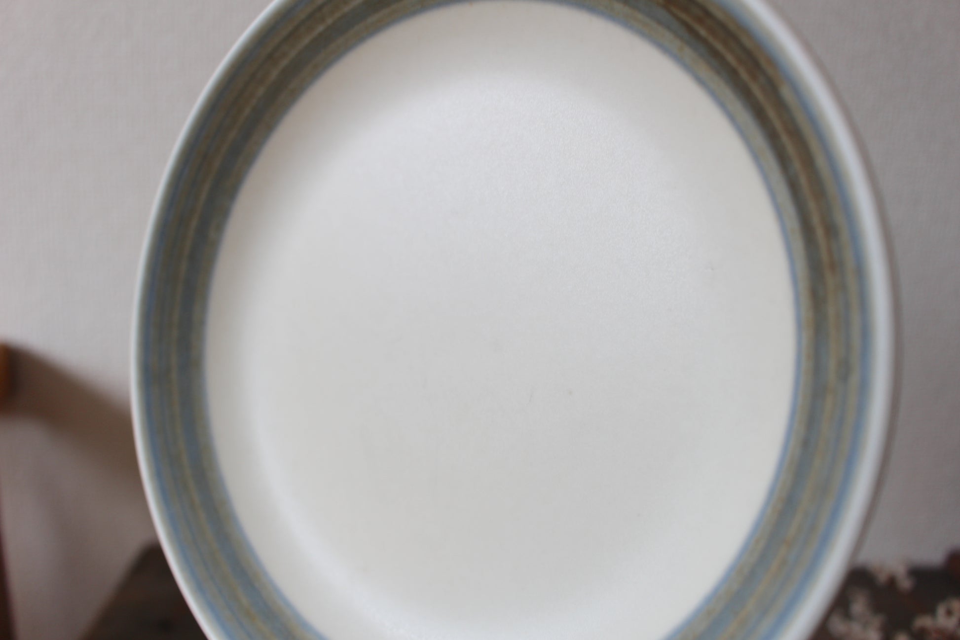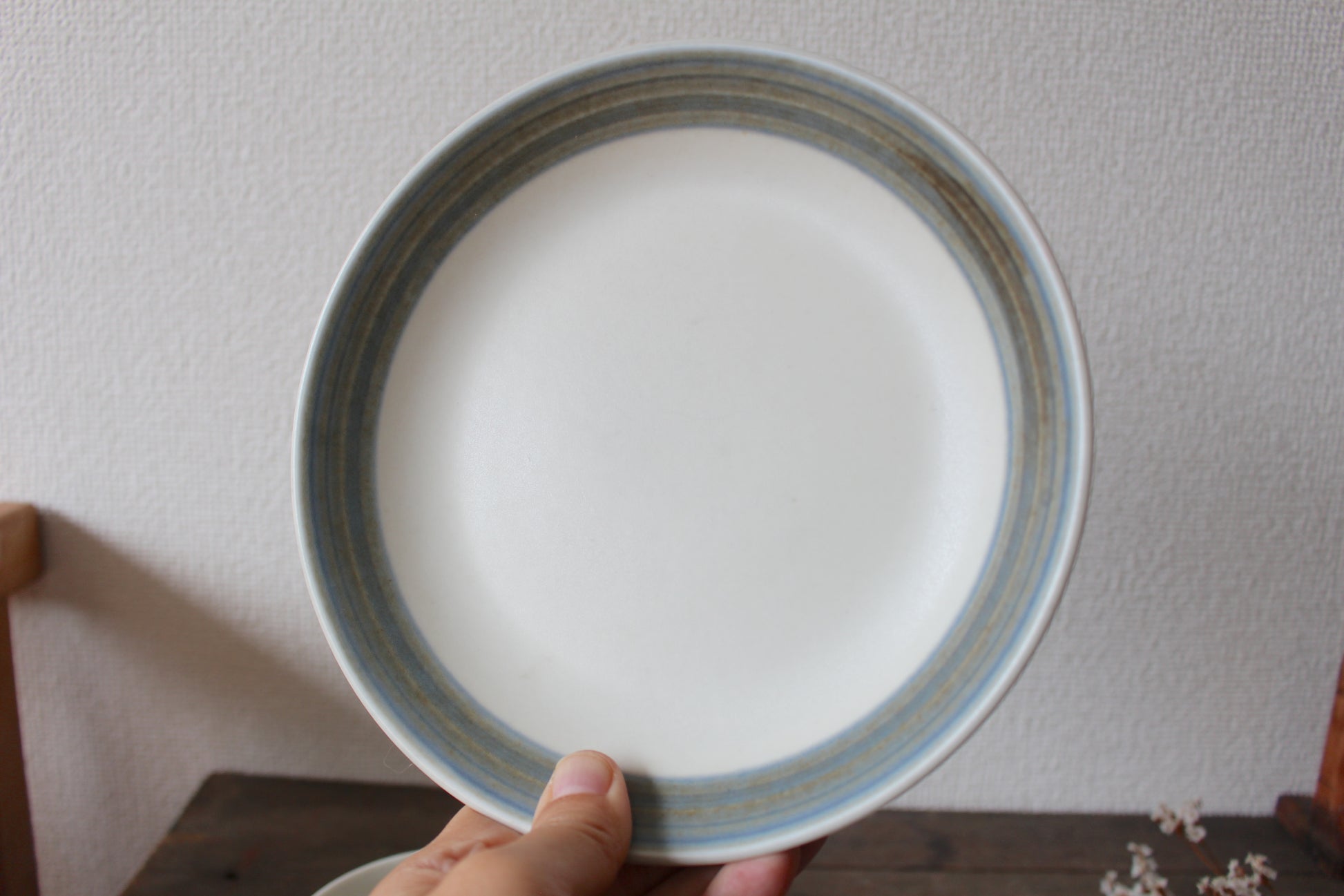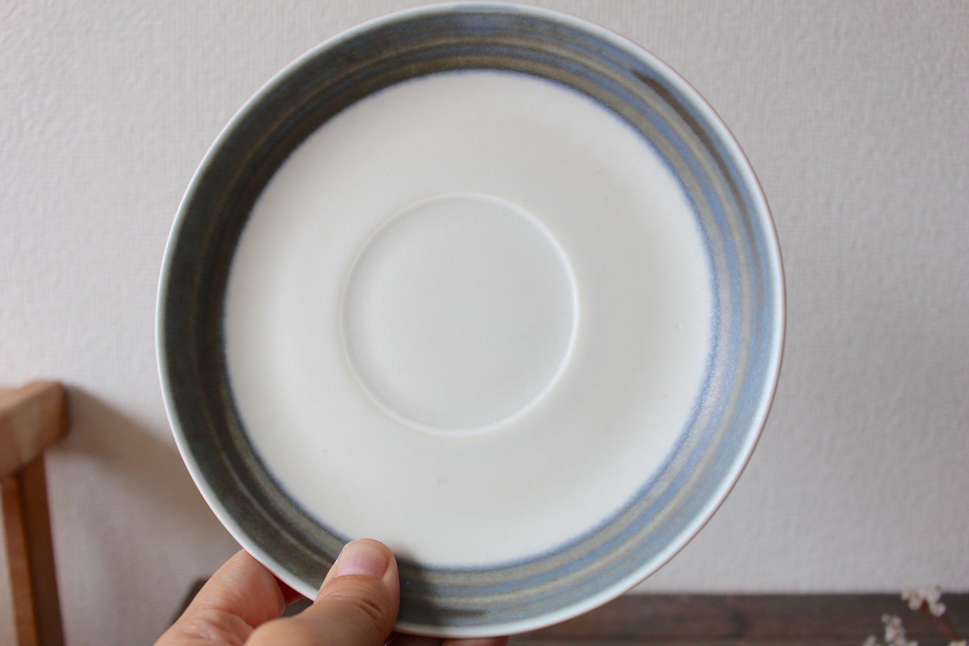 エディット・ゾンネ・ブルーン(Edith Sonne Bruun, 1910-1993)がデザインを手がけたカップ、ソーサー 、プレートの3点セットです。ぽってりとしたマットな質感、ブルーグレーのラインがアクセントになったシンプルでモダンなデザインが特徴です。60年代から70年代のものですが生産数が少なく、デンマークでもあまり出回らない希少なシリーズです。