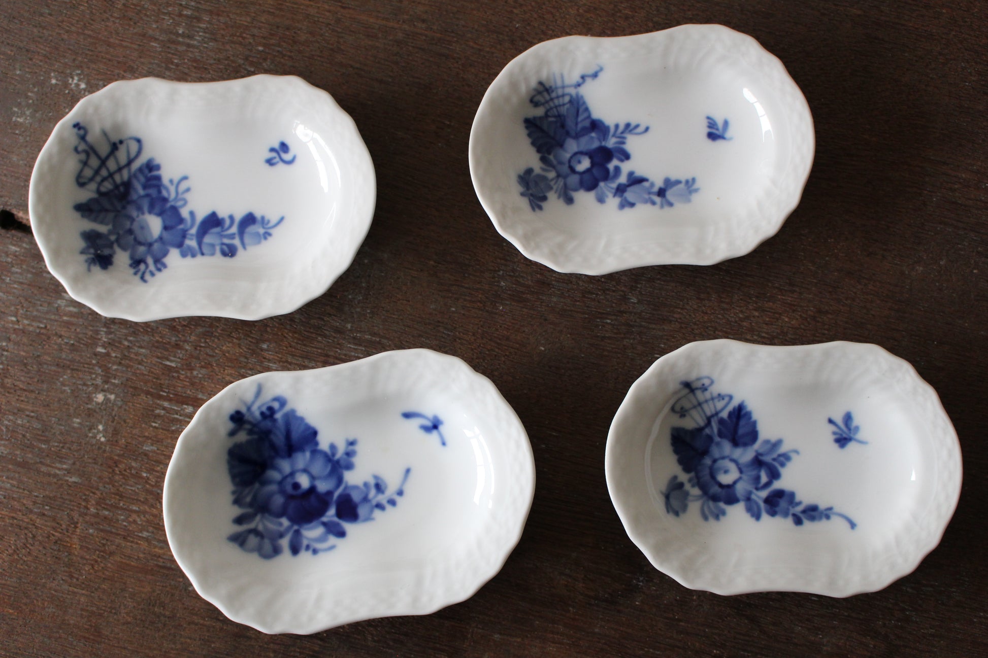 ロイヤルコペンハーゲン/ブルーフラワー/カーブ 楕円豆皿・バターパッド4枚セット