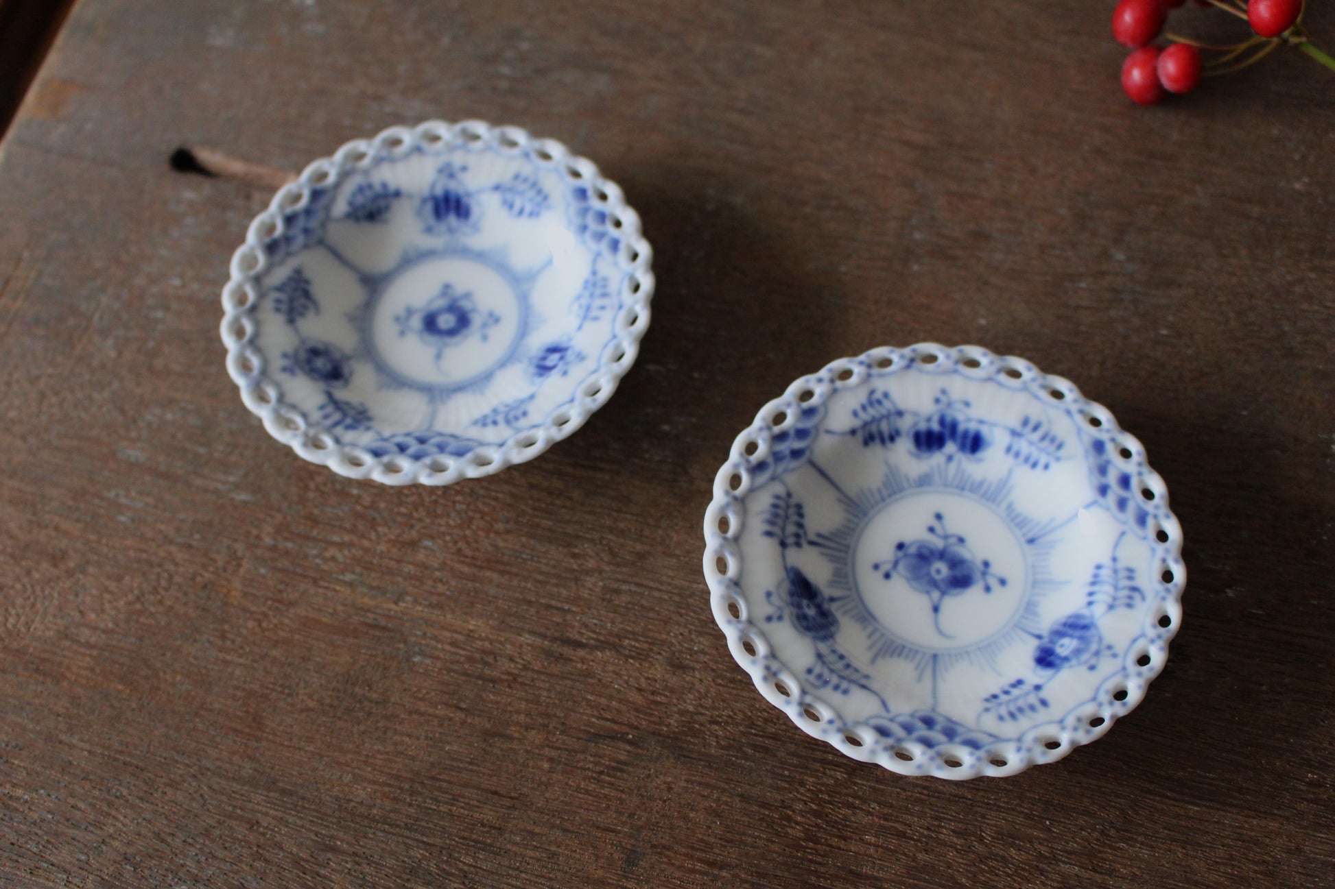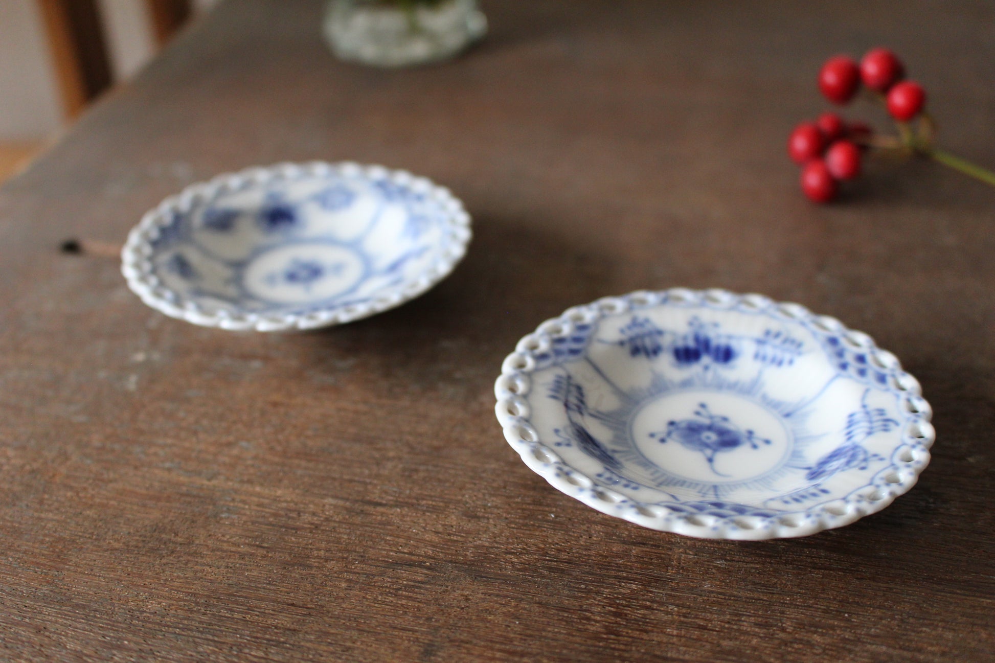 ロイヤルコペンハーゲン/ブルーフルーテッド/フルレース 豆皿・バターパッド7.5cm 2枚セット