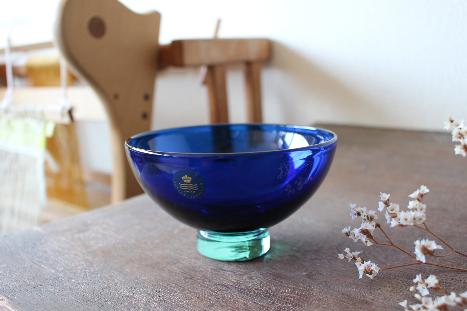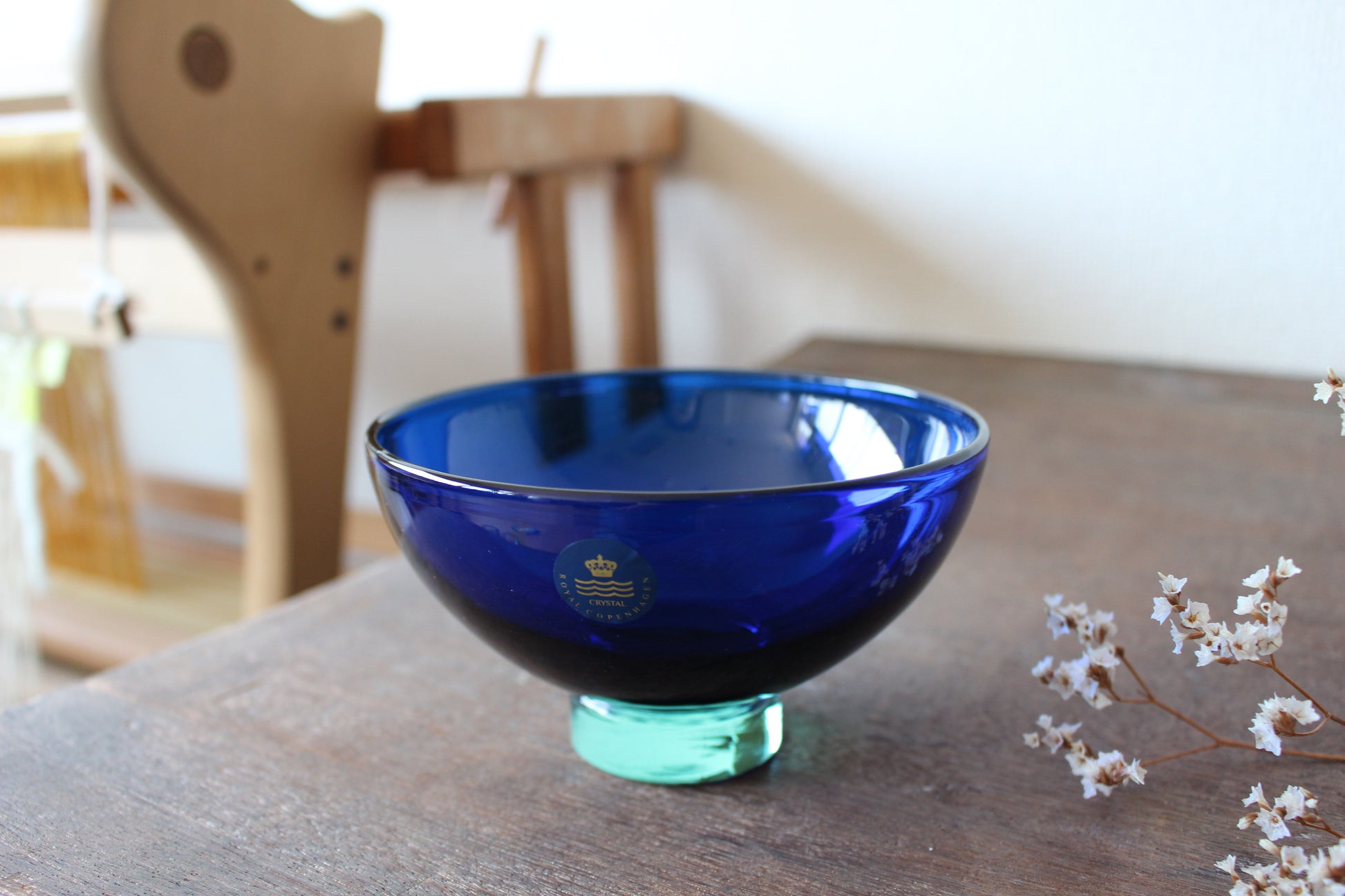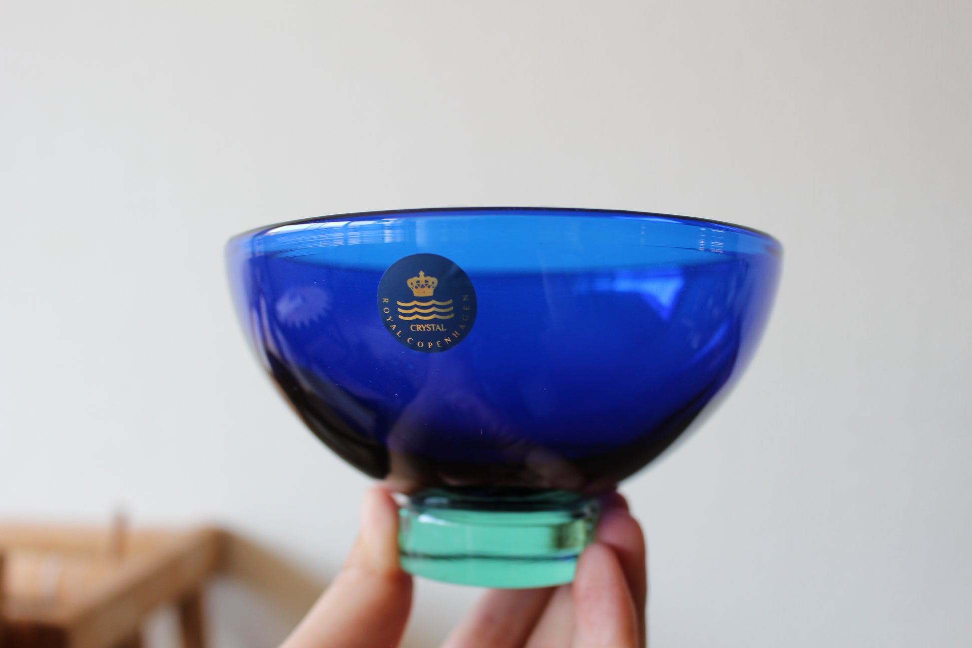 陶磁器ブランドのロイヤルコペンハーゲンとガラスブランドのホルムガードは共にデンマーク王室御用達ブランドとして有名です。デザイナーのAnja Kjaerが、ホルムガードでロイヤルコペンハーゲンのために作った希少なガラスボウル。クリーンとブルーの二層がとても綺麗です。