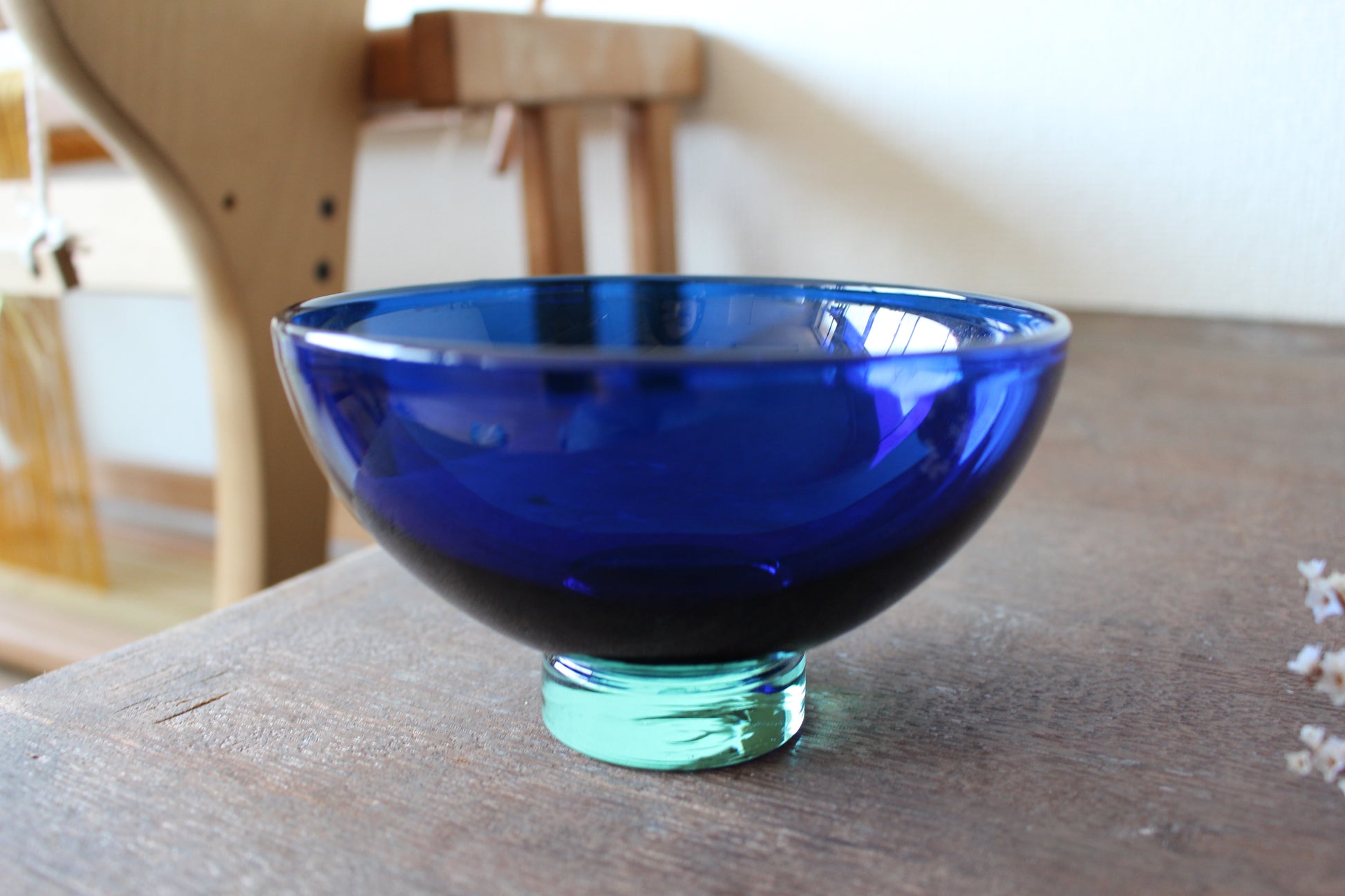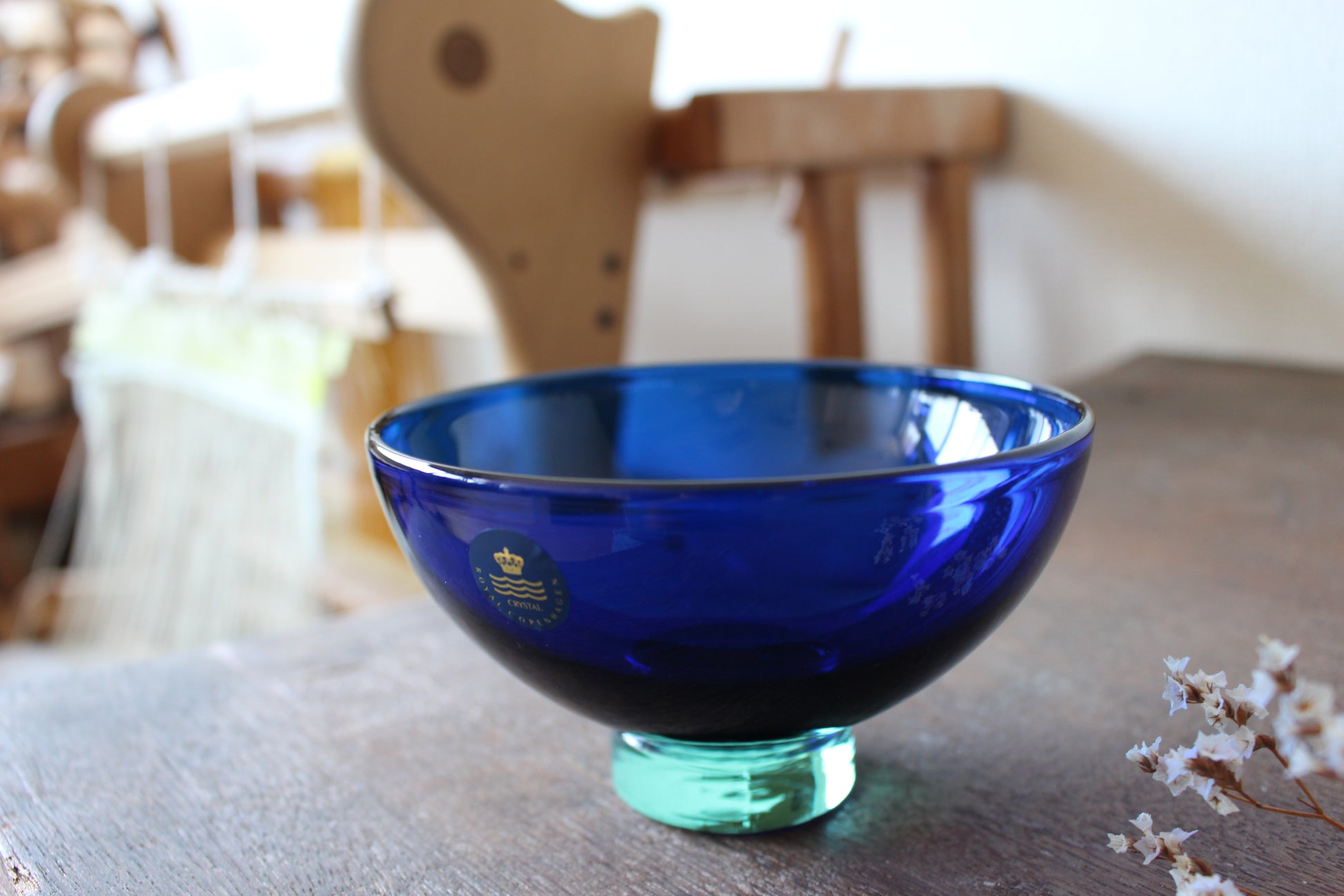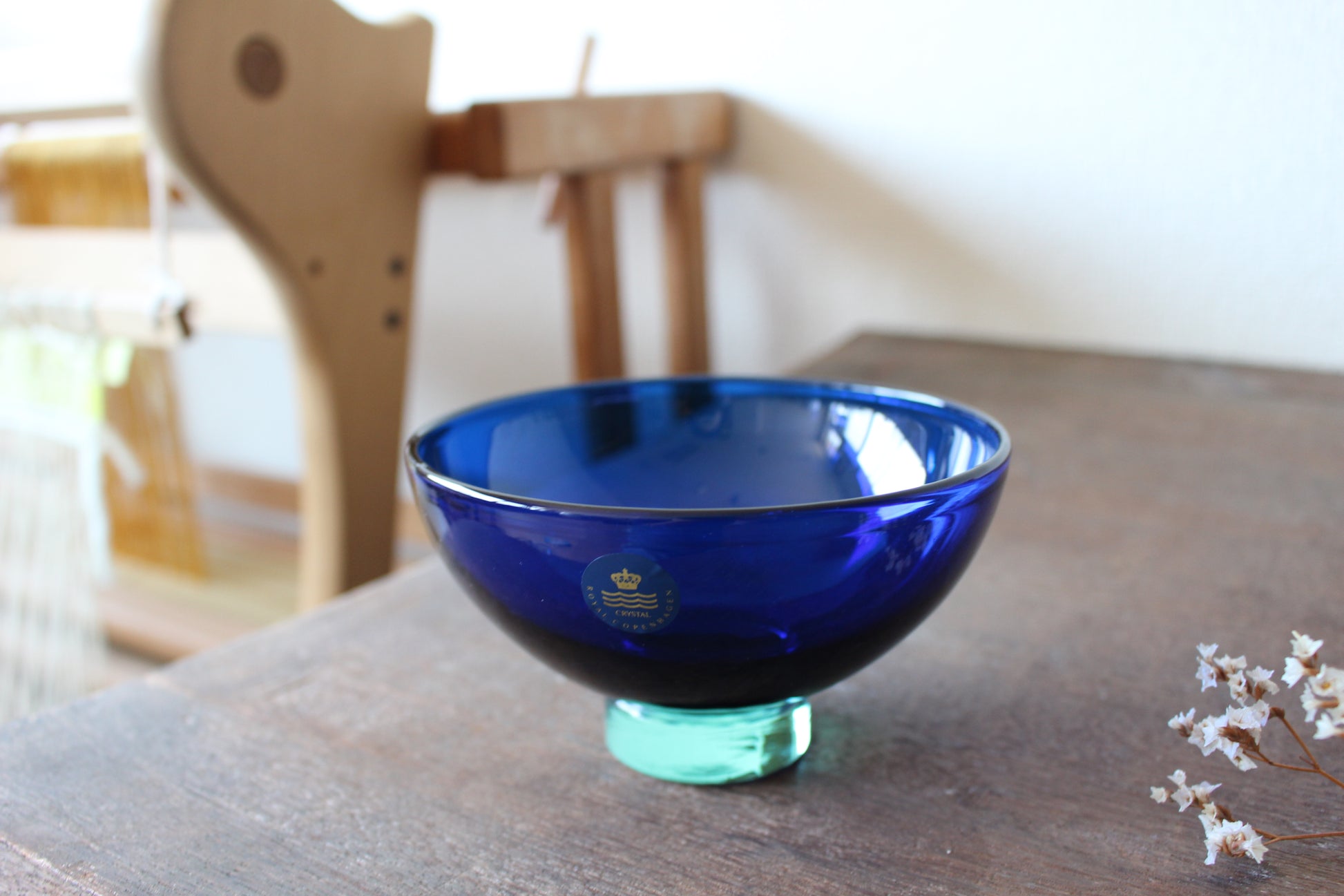 陶磁器ブランドのロイヤルコペンハーゲンとガラスブランドのホルムガードは共にデンマーク王室御用達ブランドとして有名です。デザイナーのAnja Kjaerが、ホルムガードでロイヤルコペンハーゲンのために作った希少なガラスボウル。クリーンとブルーの二層がとても綺麗です。