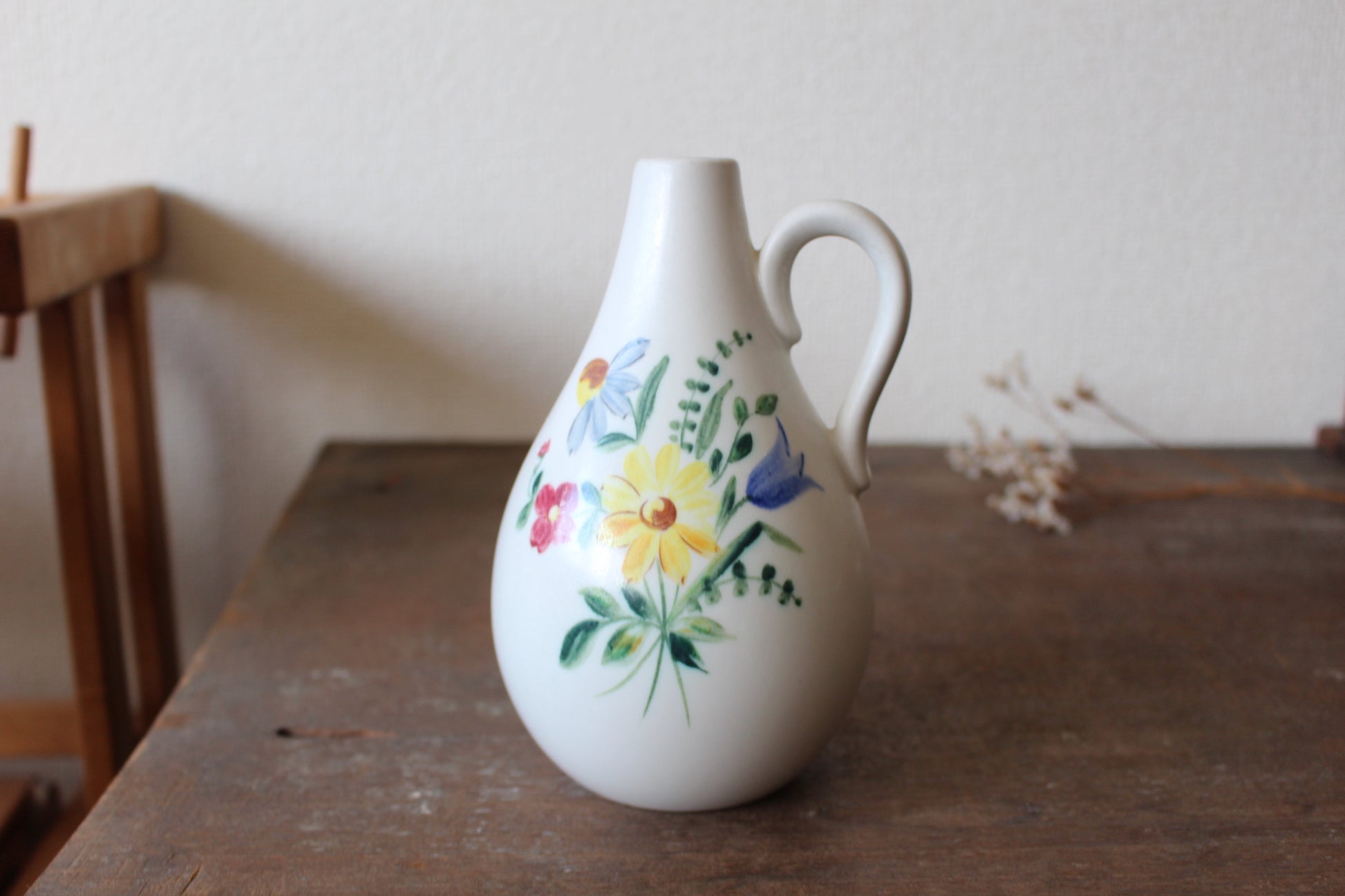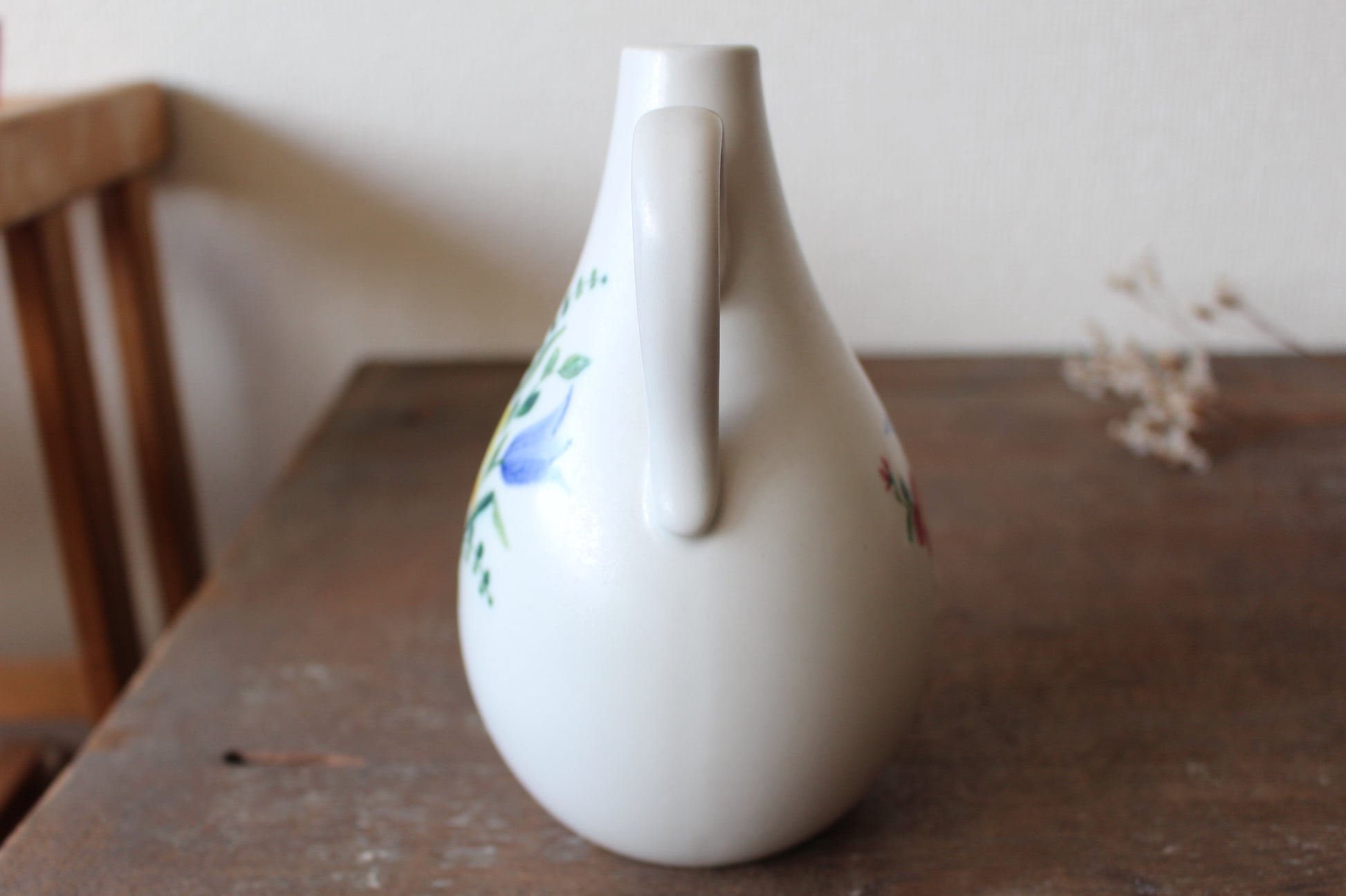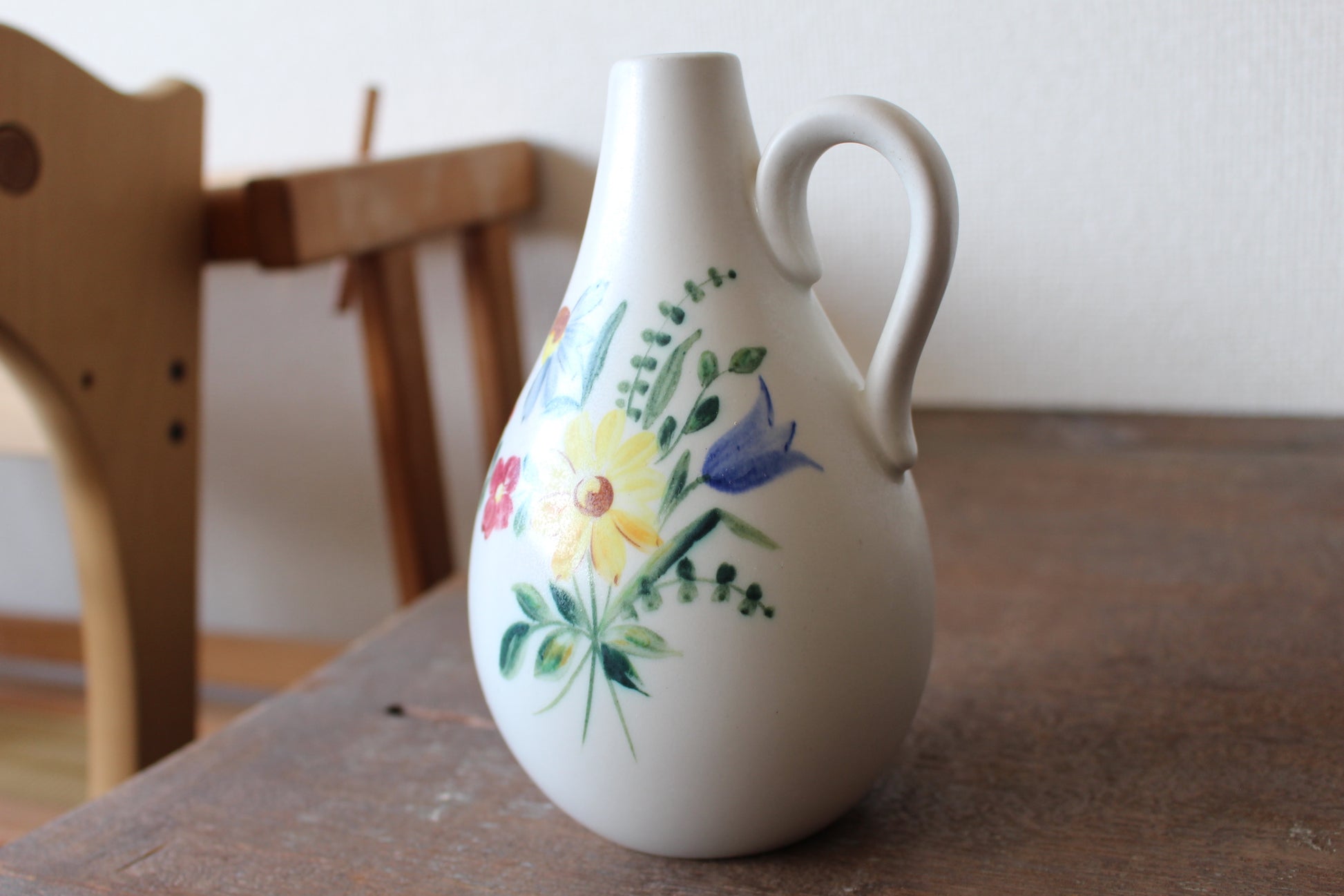 ロースルトランドのstudioで製造されたフラワーベースです。丸みのある美しいフォルムに、手描きで野花が描かれた優しい雰囲気の花瓶です。