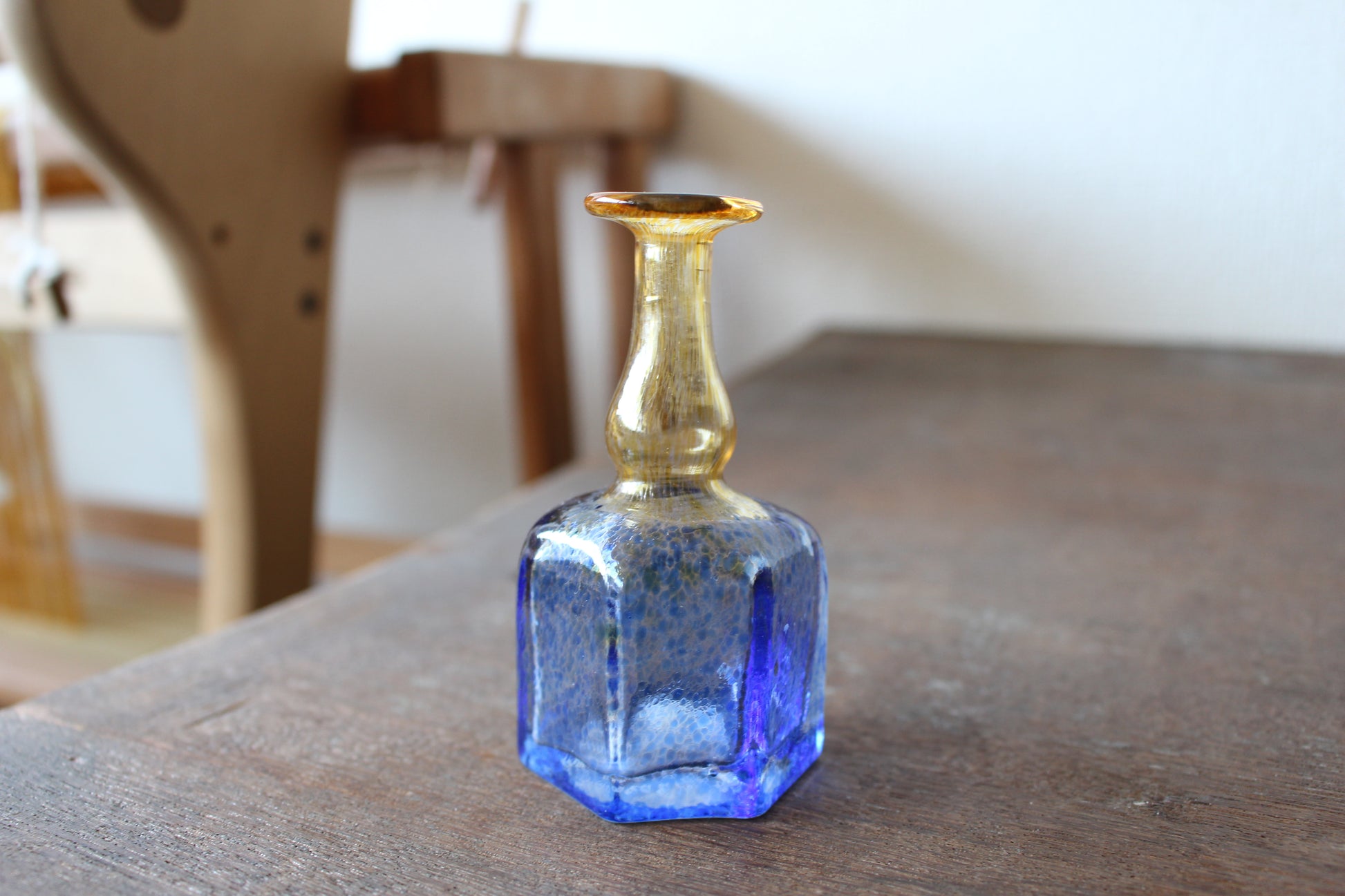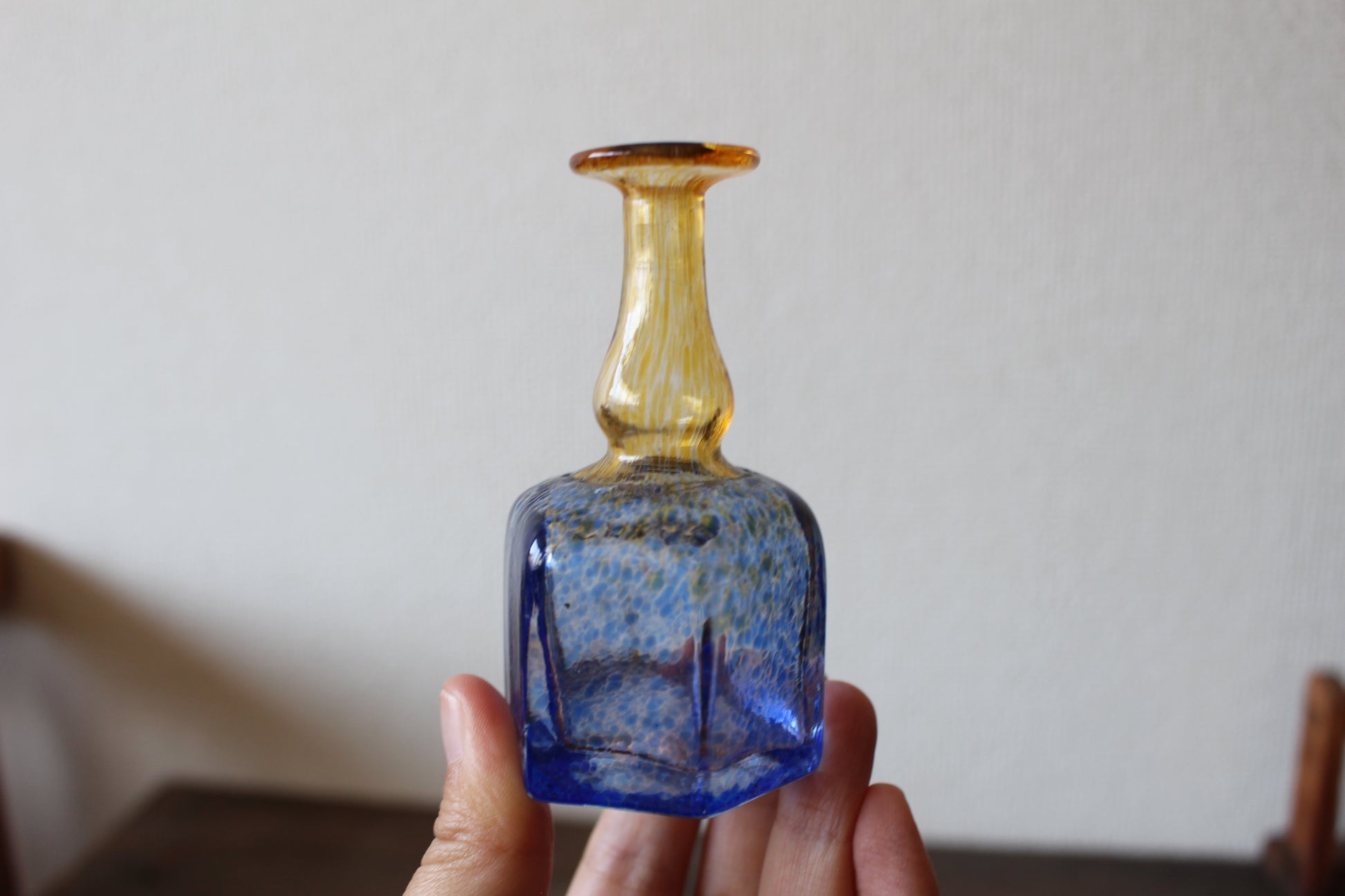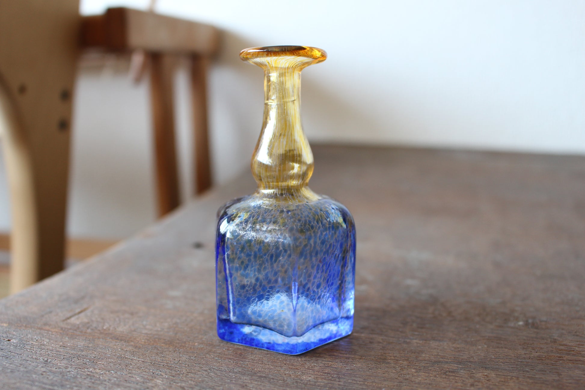 Kosta Bodaは、スウェーデンの南スコーネ地方にあるヨーロッパ最古のガラスメーカーで、Boda社(1742年創業)と「Kosta社」(1864年創業)が1960年に合併し誕生しました。Kosアーティストコレクションシリーズのミニボトルは手のひらサイズの小さな一輪挿しで、ドットと色のグラデーションとても綺麗です。デザインはKosta Bodaを代表するBertil Vallien/バーティル・ヴァリーンによるもの。このミニサイズは、SAS(スカンジナビア航空)のファーストクラス向けギフトだったと以前の持ち主から聞きました。