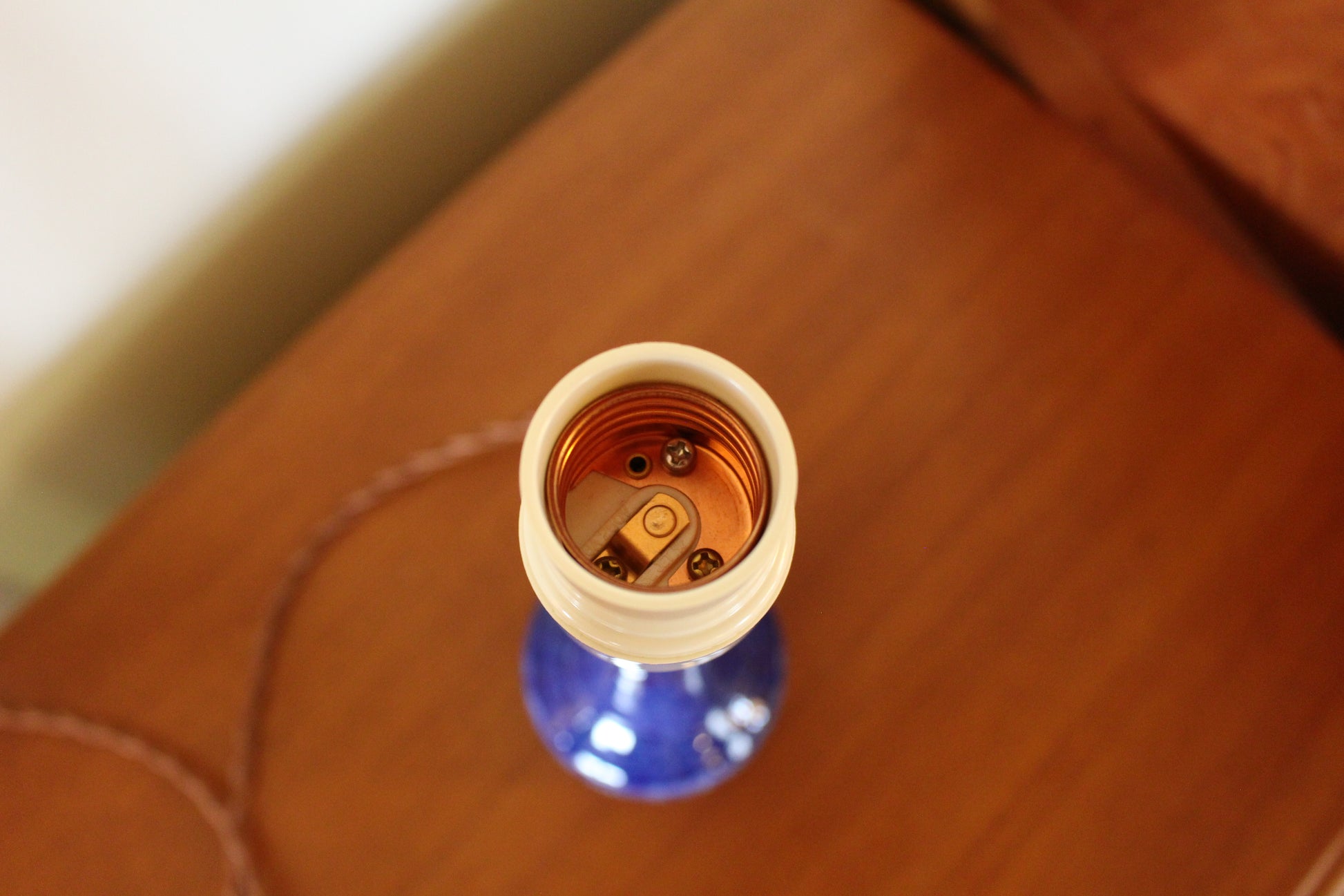 コンセントやソケットは日本仕様に新しくし、コードもインテリアを邪魔しないブラウンに変えています。