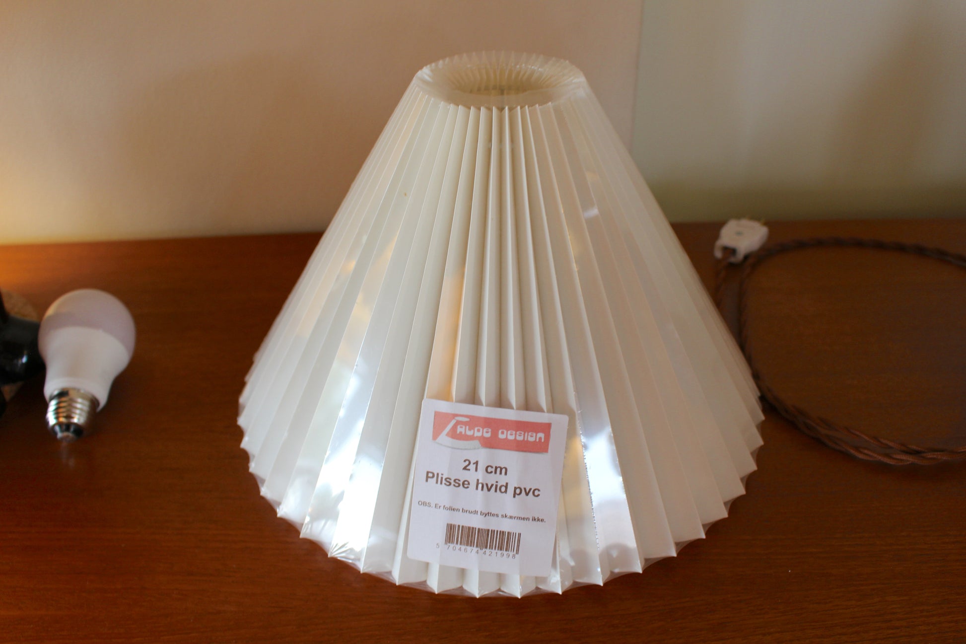 デンマーク産の布製の新品ランプシェードをお付けします。