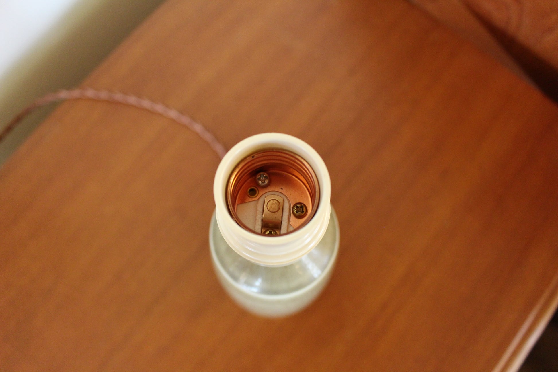 コンセントやソケットは日本仕様に新しくし、コードもインテリアを邪魔しないブラウンに変えています。