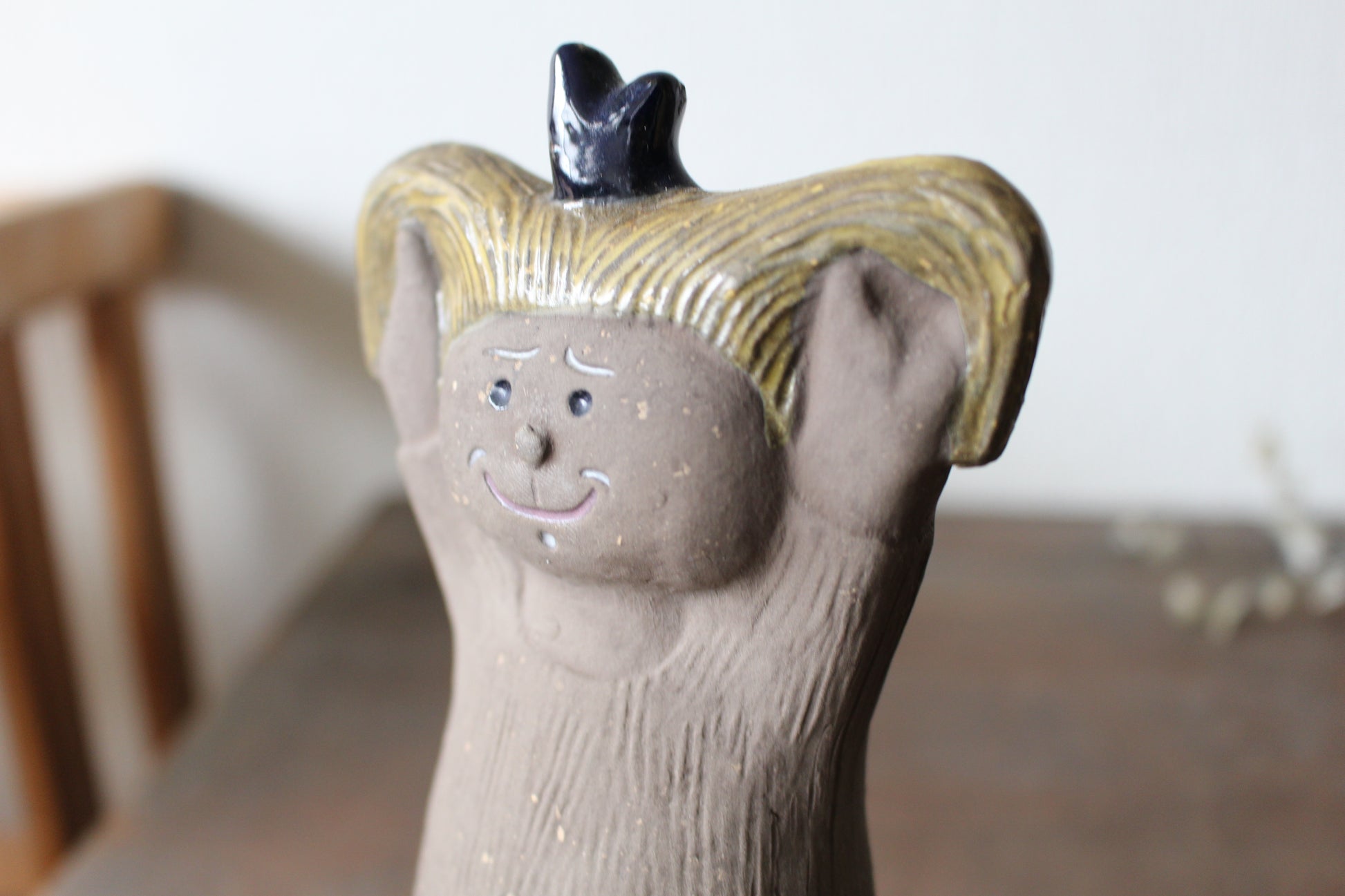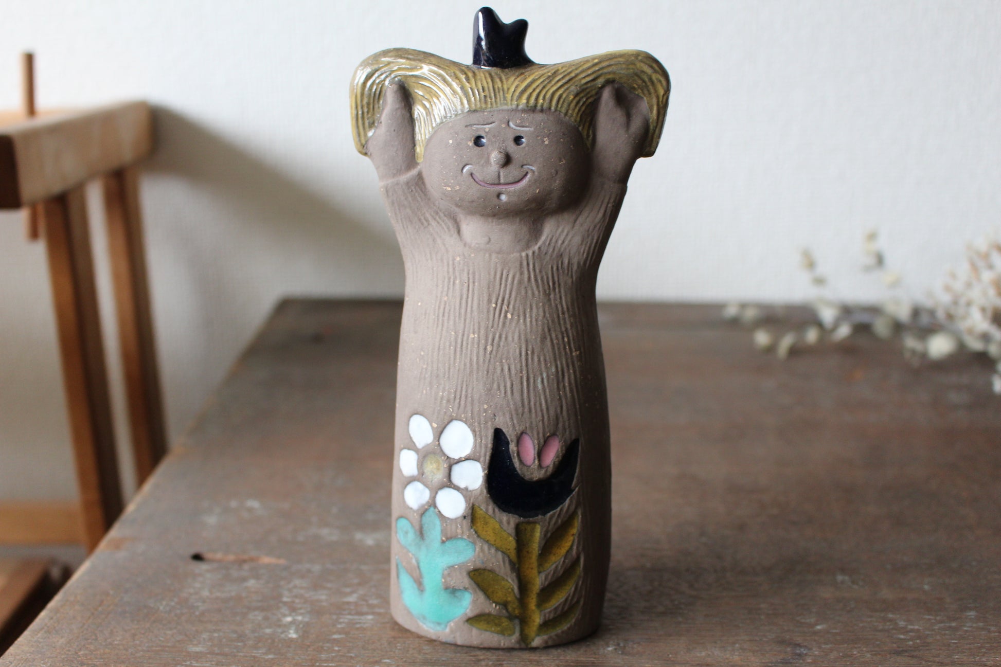 マリ・シムルソンは、数多くの名品をデザインしてきましたが、中でも有名なのがIna, Gina, and Stinaの3人の女の子のオブジェです。こちらはその中のStina。頭には王冠、身体にはポップな花、そして自ら髪の毛を持ち上げる、3人の中で一番やんちゃな雰囲気のStinaです。